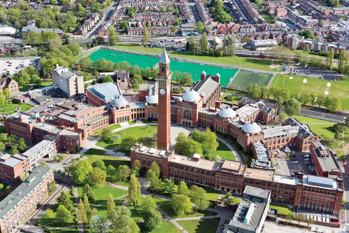 伯明翰大學坐落於英國伯明翰市的愛德巴斯頓(Edgbaston)地區,是英國唯一擁有專屬火車站(University Station)的大學,從校園前往市中心僅需 7 分鐘,交通極為便利。此外,伯明翰擁有蓬勃發展的科技產業,市中心聚集了眾多科技公司與初創企業(如 Innovation Birmingham Campus),為學生提供豐富的實習和拓展人脈機會。